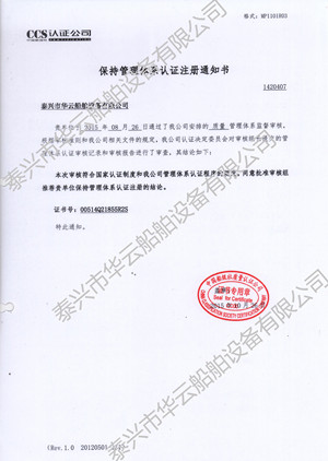 CCS管理认证注册通知书